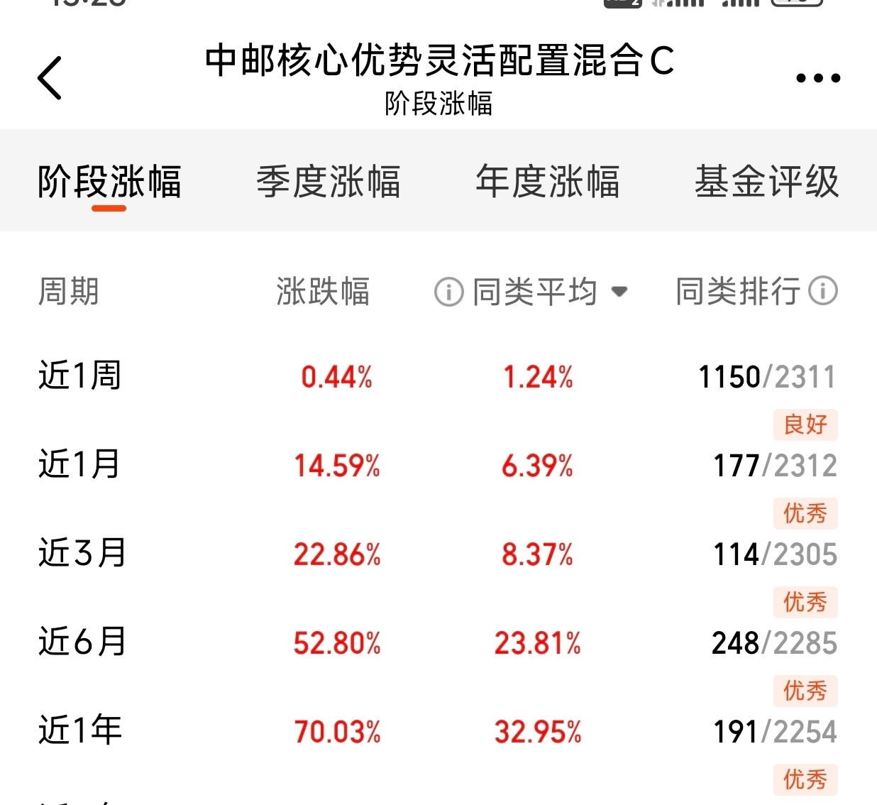 追高科技的时候,别忘了还要继续防御了,$中邮核心优势灵活配置混合C$ 这个聚焦有色金属,近一月也是吃肉不少了