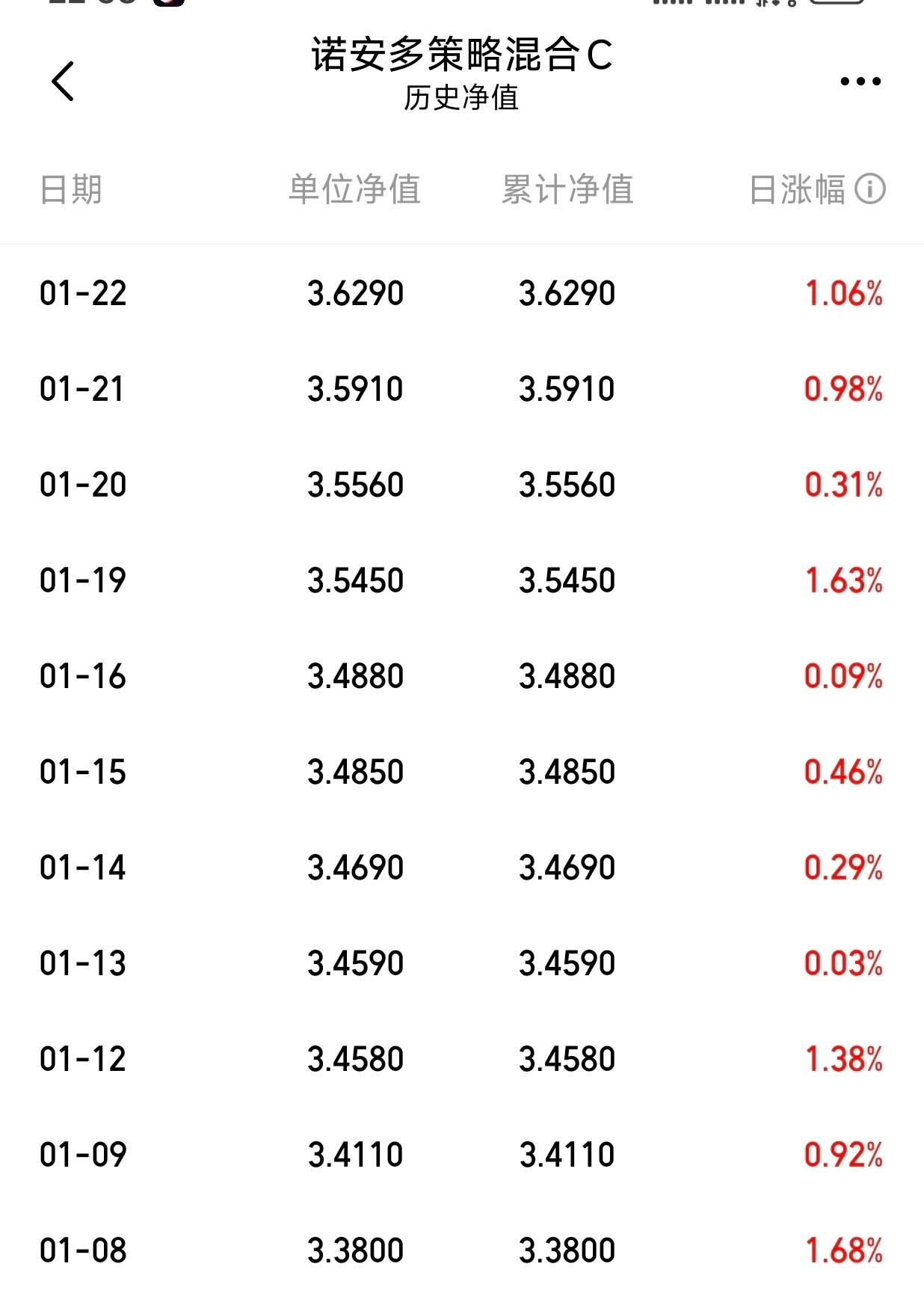 微盘股$诺安多策略混合C$ 十一连涨,可以考虑继续定投到过年了啊,哪一个月赚钱概率90%没问题吧