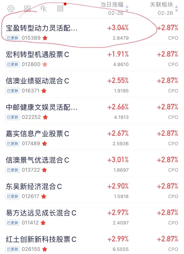 今天cpo大涨,$宝盈转型动力混合C$ 也是扬眉吐气了,涨福3点多。看着业绩就知道了,整体都是吃肉的