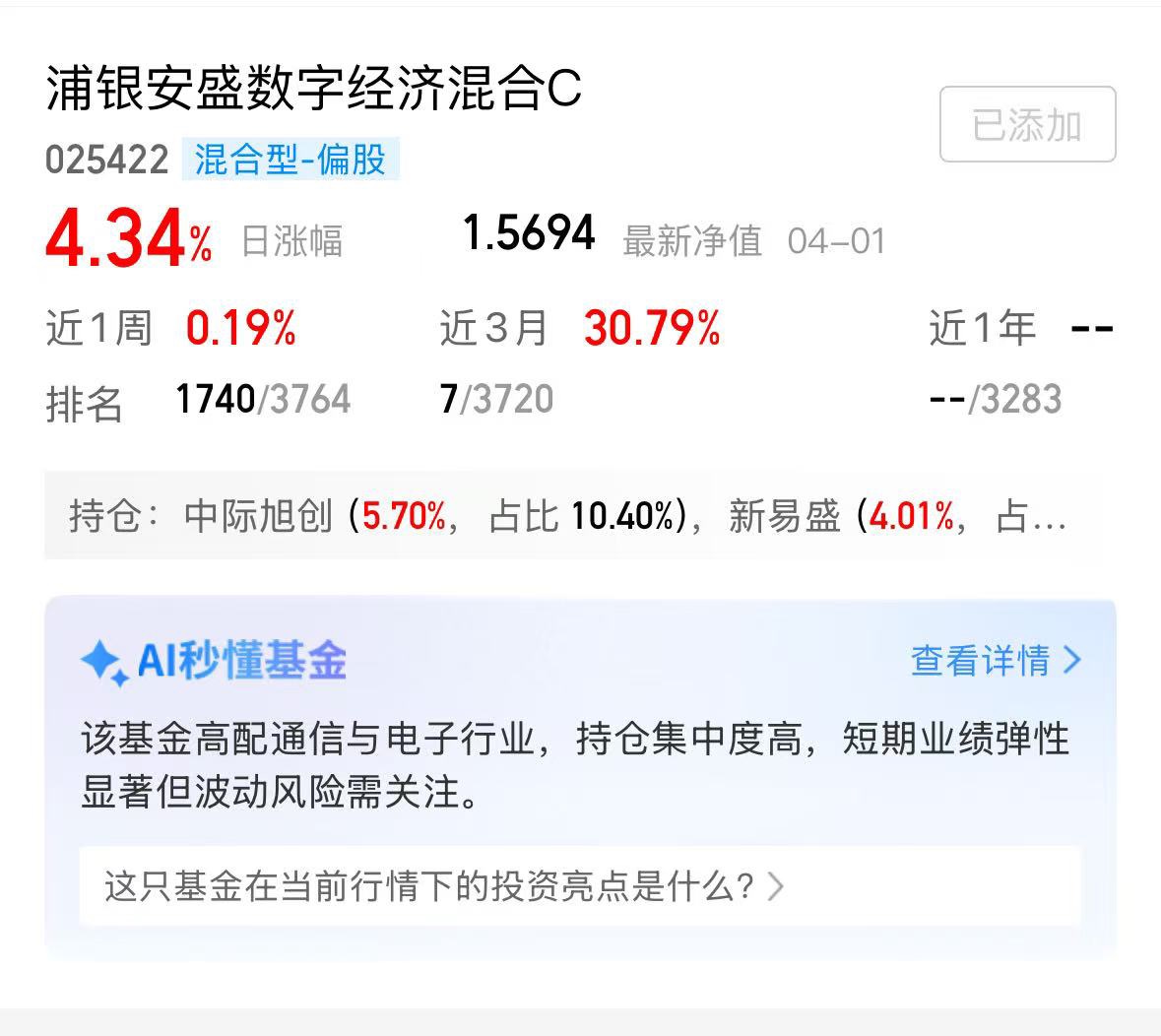 昨日CPO概念爆发,浦银安盛数字经济4.34%,大幅领先华商均衡成长C的3.02