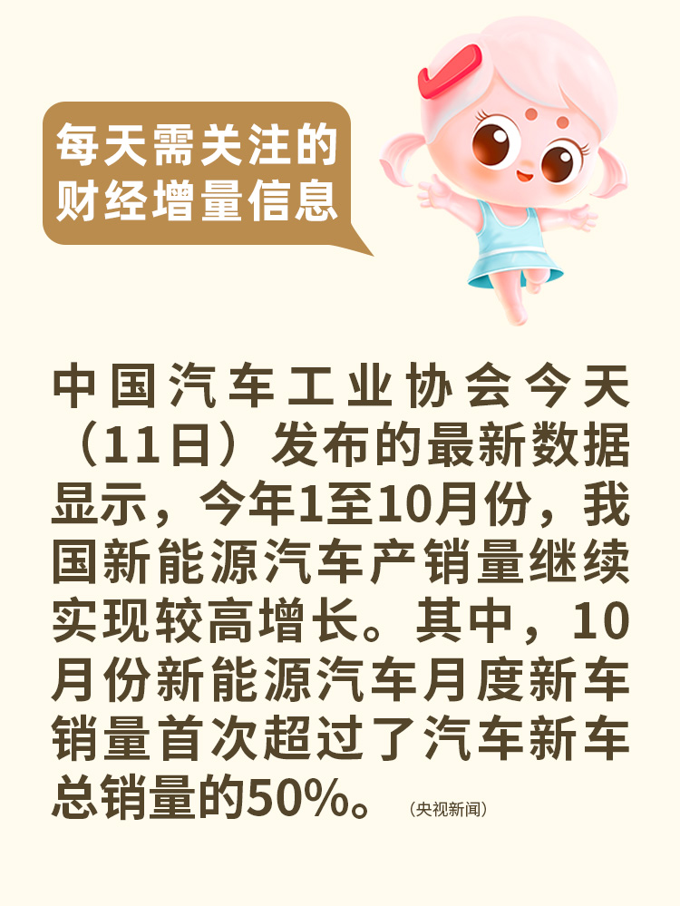 【每天需关注的财经增量信息】今年1至10月份,我国新能源汽车产销量实现较高增长