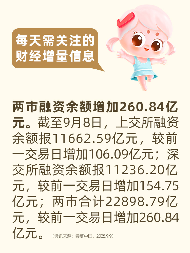 【每天需关注的财经增量信息】两市融资余额增加260.84亿元
