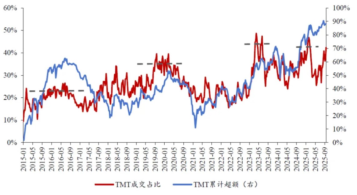 图:TMT成交占比与累积超额