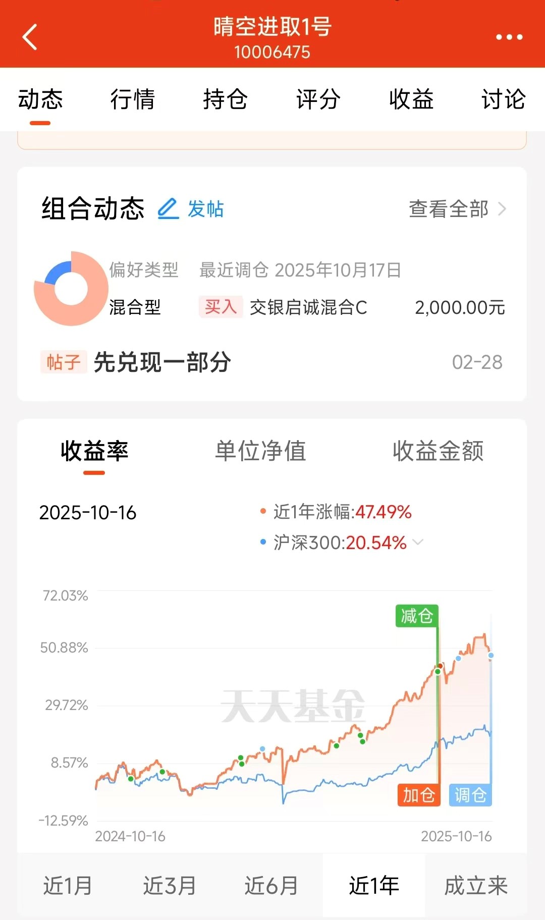 回到我自己的实盘,我倾向于给组合加入“老登股”守好当下收益,如果科技股调整出性价比,方能在分化行情里踩准节奏,稳稳穿越周期。最近给组合中调入了红利基金$景顺长城沪港深红利成长低波指数C(OTCFUND|007760)$,偏大盘价值风格的$交银启诚混合C(OTCFUND|014039)$,以及小盘量化基金$南华丰汇混合C(OTCFUND|021526)$。这几只基金,基本不用自己做择时了,在能见度低的市场环境中,让量化模型发挥自己的力量即可。