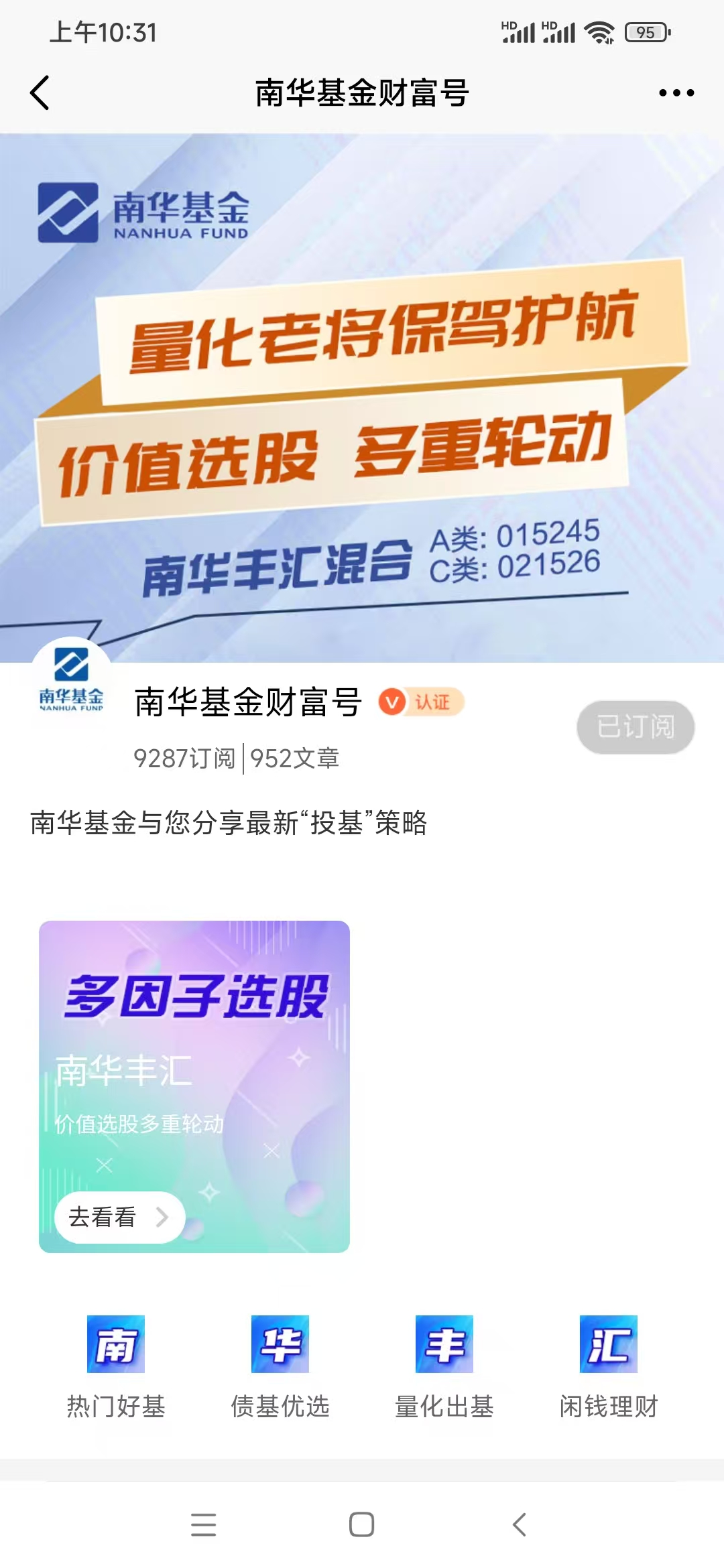 我是一名普通上班族,平时喜欢投资基金,因为自己可以不必过多操作,节省时间,这两天还在赶年末总结,因为抽到我要在年会上发言了,不知道到时候能表现的如何。对于您管理的南华丰汇混合A (015245)我是有些好奇的,所以提出一些问题,希望您抽空回复下哈。(自选图在文末哦)