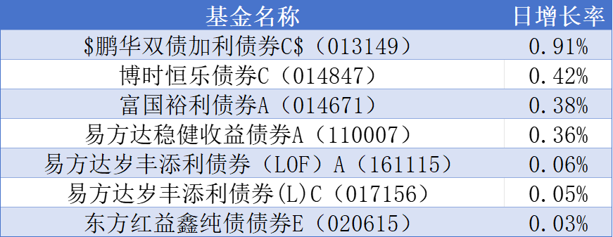 股市今天量价齐升,做多热情被点燃了,这种行情看着就舒服;债市方面消息面比较平静,走势也就缺乏方向。好在$鹏华双债加利债券C$(013149)不受影响,收了91个蛋,博时恒乐债券C(014847)收了42个蛋,易方达岁丰添利债券(LOF)A(161115)收了6个蛋。鹏华双债投资范围涵盖可转债等,工具运用灵活,有助于增厚收益。#开门红!A股重返4000点#