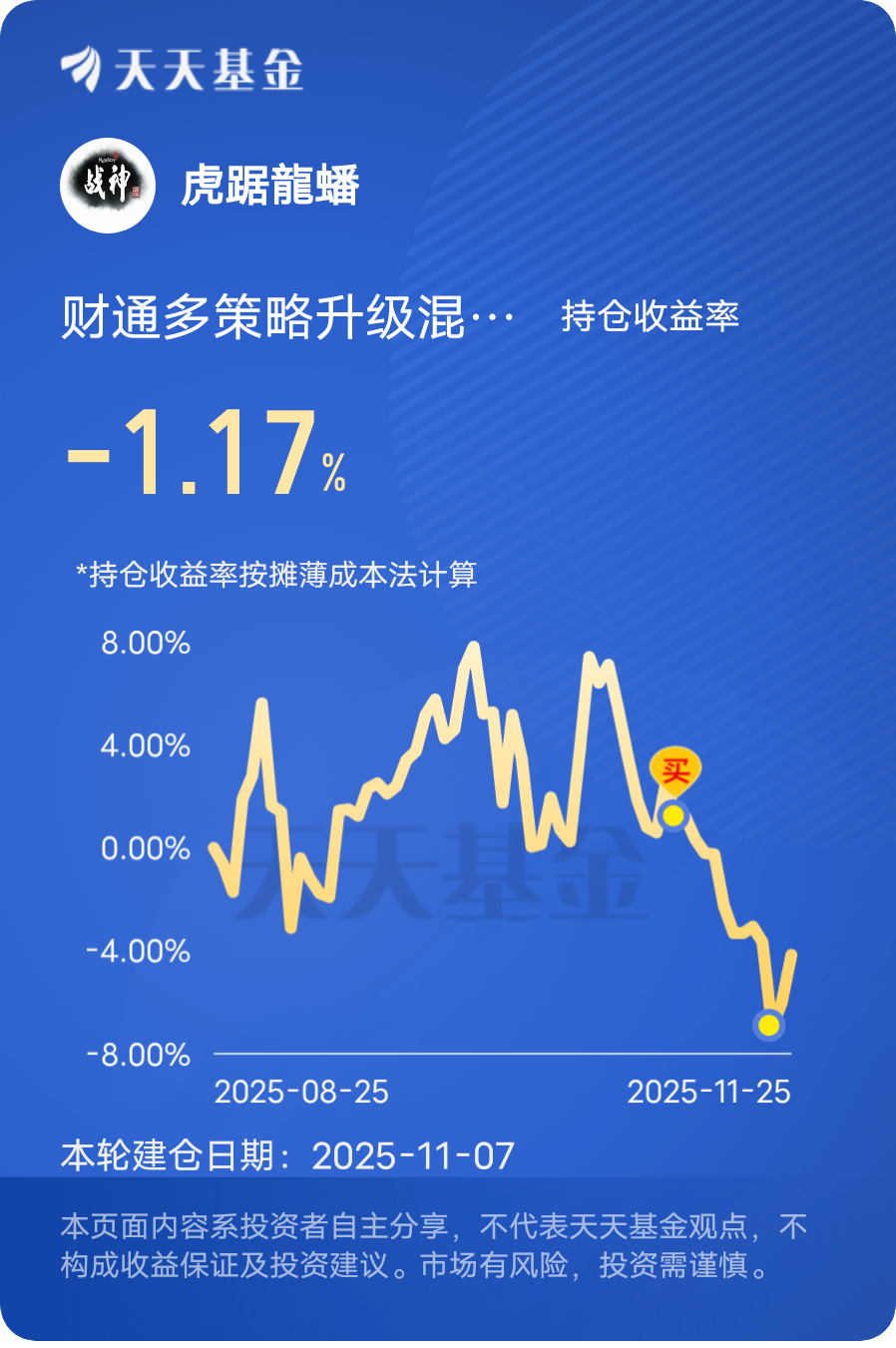 基民小虎是财通基金的铁粉,一直定投持有$财通价值动量混合C$ $财通多策略升级混合(LOF)C$ $财通集成电路产业股票C$ 等多只基金产品,虽然受市场持续回撤影响,基金净值有所回撤,但仍会坚持定投,坚定持有,相信能够获得更好的长期投资回报!@财通基金