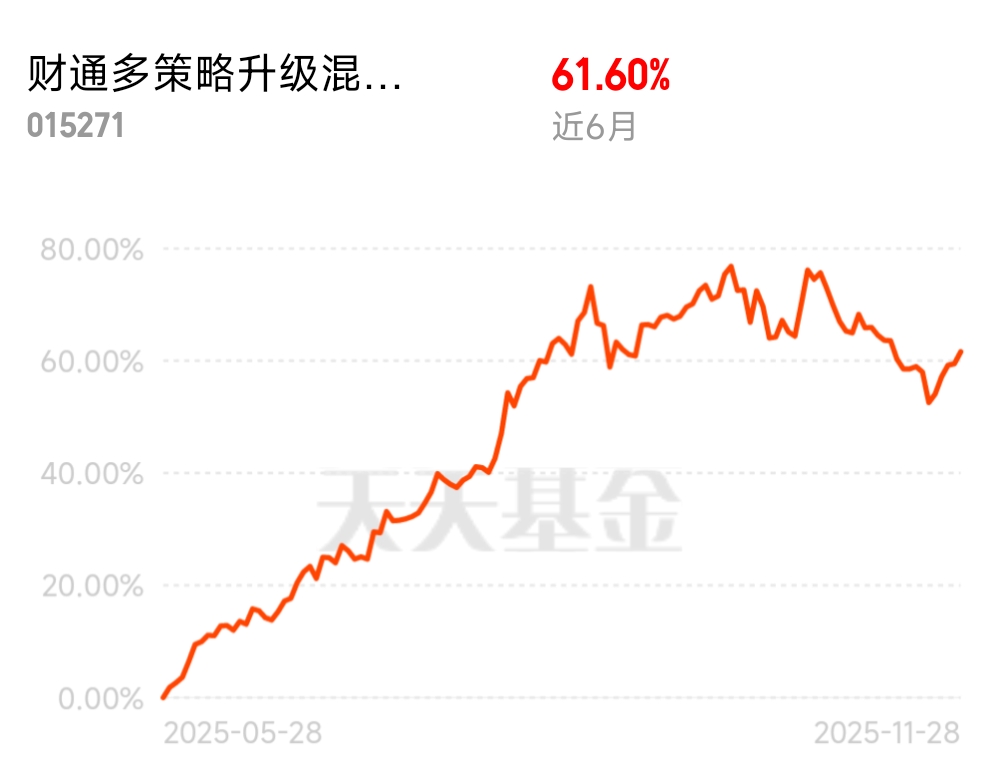 寻找风险与收益的平衡点,首先要明确“平衡不是中庸,而是精准匹配”——既不盲目追求高收益而忽视风险底线,也不因惧怕波动而放弃合理收益。财通多策略升级混合(LOF)C的产品定位恰好契合这一逻辑,其风险收益水平介于股票型基金与债券型基金之间,通过“权益资产进攻+多元策略防守”的组合,在震荡市中走出了独特的平衡路径。截至2025年11月,该基金近12个月收益率达71.14%,近6个月涨幅更是高达61.05%,而近3个月仅微跌1.07%,这种“涨得多、跌得少”的业绩特征,正是风险收益平衡的直观体现。