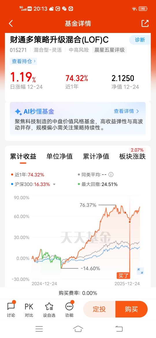 基民小虎是财通基金的铁粉,坚定持有$财通多策略升级混合(LOF)C$$财通集成电