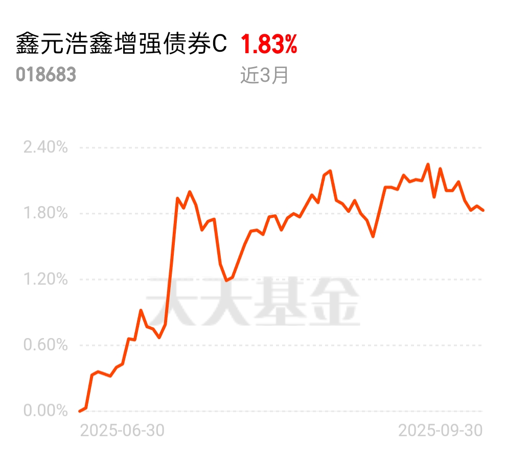 现在市场波动大,不少人都想找个“压舱石”。看来看去,还是鑫元浩鑫增强债券C不错,近3个月涨了1.83%,收益扎实。手上有余钱的建可以看看,难道稳稳攒收益他不香吗?