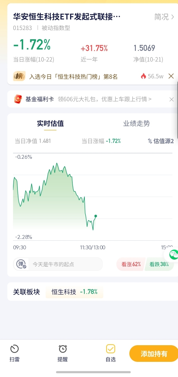 【华安恒生科技ETF发起式基金估值播报+10.22行情】