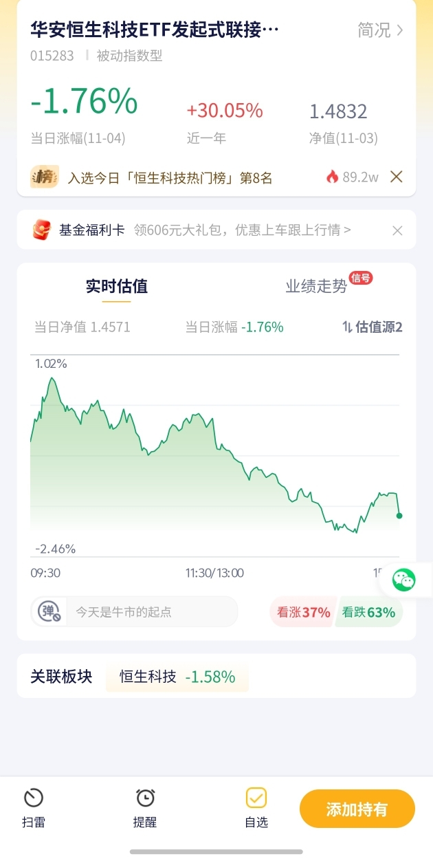 华安恒生科技ETF发起式今日预估涨幅-1.76%!港股科技板块回调,该基金短期承压,长期可逢低布局