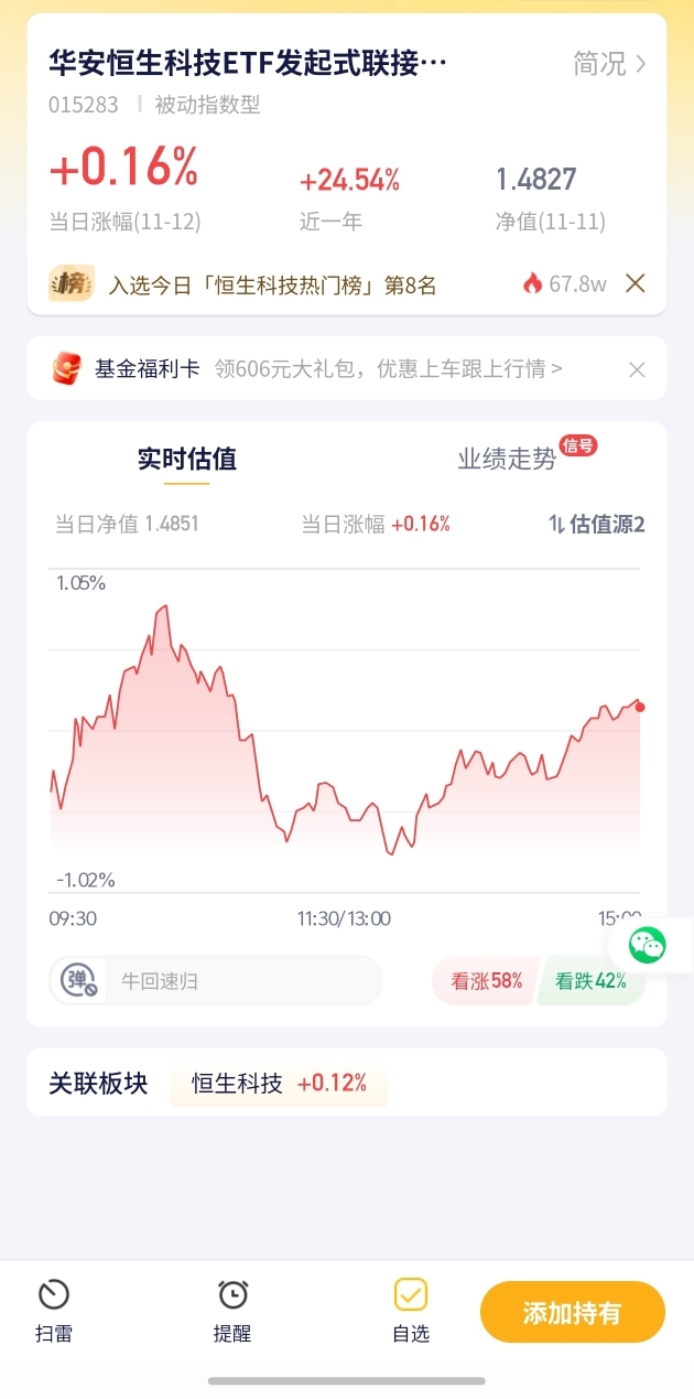 华安恒生科技ETF发起式今日预估涨幅+0.16%!恒生科技板块表现平稳,该基金领涨自选,还不错