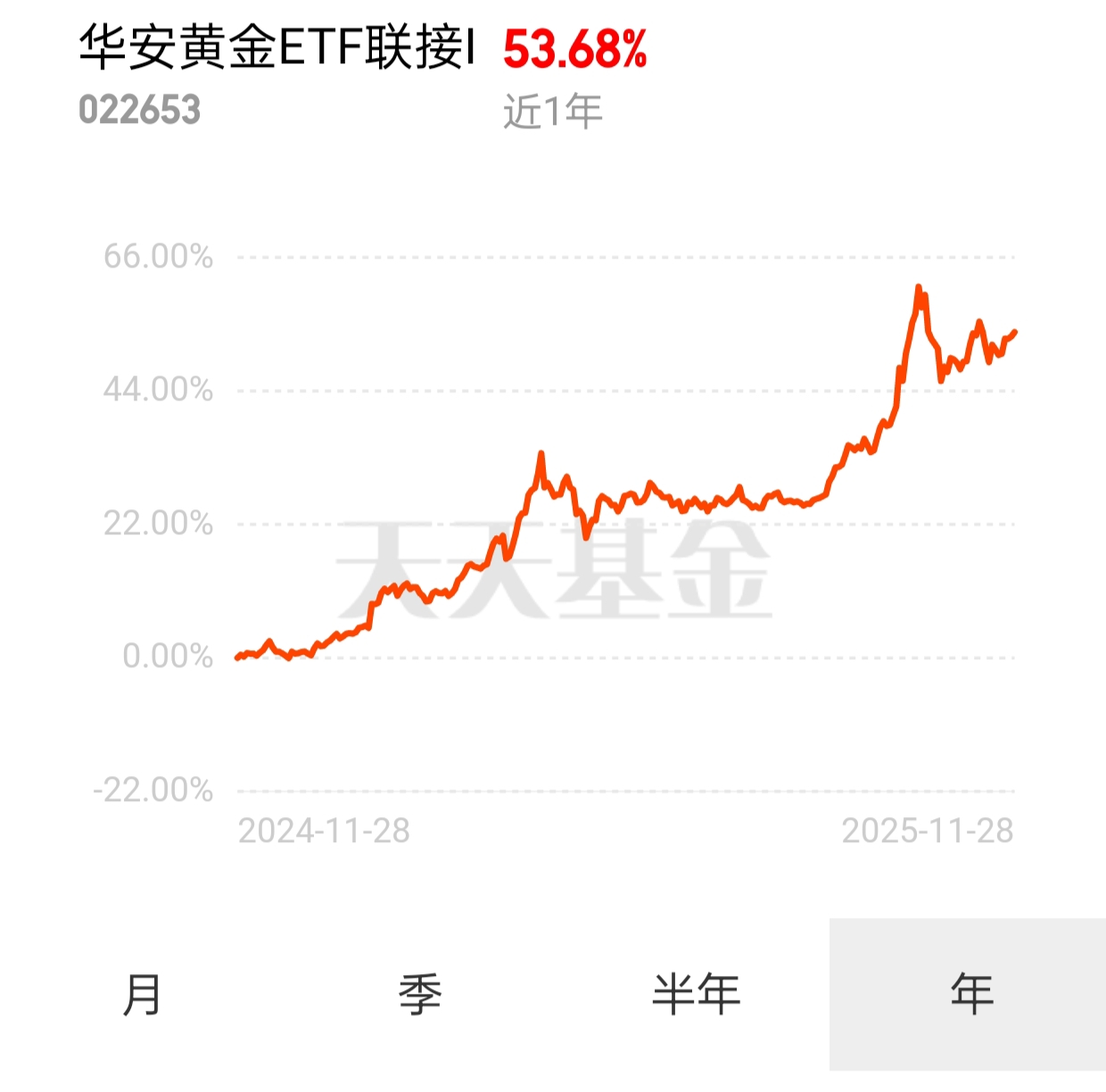 科技主线轮动快,避险黄金再度受追捧。$华安黄金易ETF联接I$(022653)近3个月涨21.35%,今年以来超53%,业绩同类领先。0申购费,持有7天0赎回费,费率全场最低,省下来的都是实实在在的收益,聪明配置选它#12月基金投资策略#