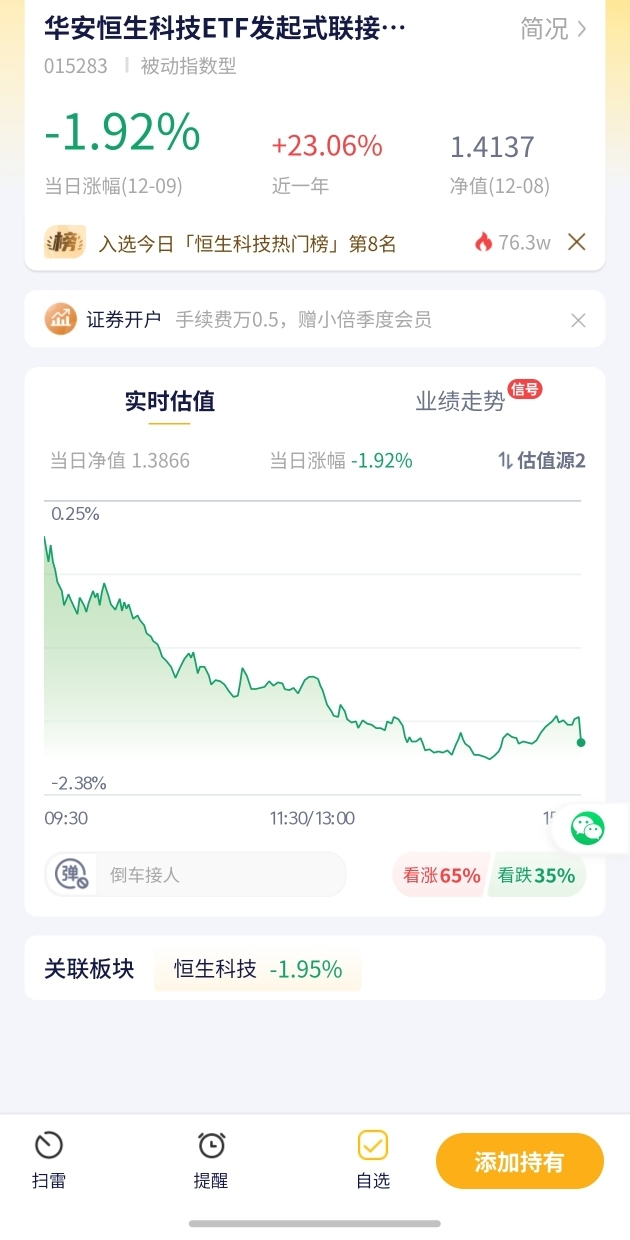 9.【华安恒生科技ETF发起式估值播报+12.09行情】