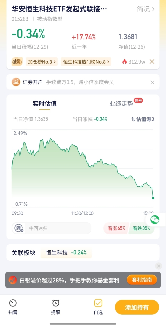 6.【华安恒生科技ETF发起式估值播报+12.29行情】