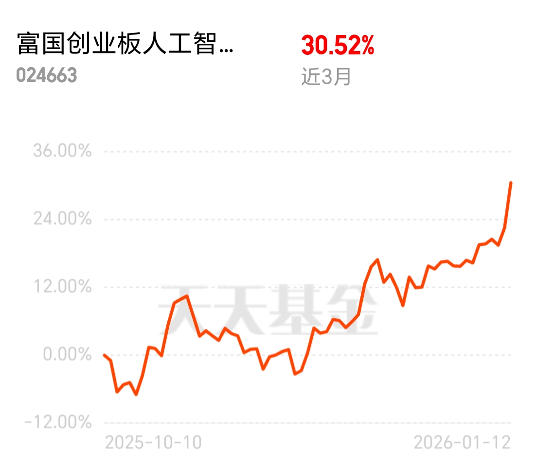 富国创业板人工智能ETF联接C近1周涨9.2%,近3个月涨31%,体现A股AI板