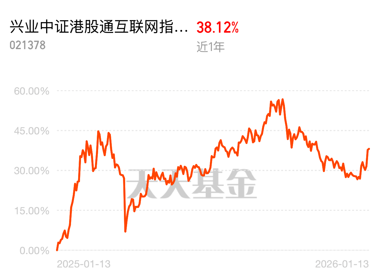 港股人工智能概念股集体走高,大模型商业化推动行业估值回升。AI 应用这波还是港股互联网最强,兴业这几天多跑 3.4 个点,兴业中证港股通互联网指数发起式 C 近 1 年 38.12%,值得重点看。$兴业中证港股通互联网指数发起式C$
