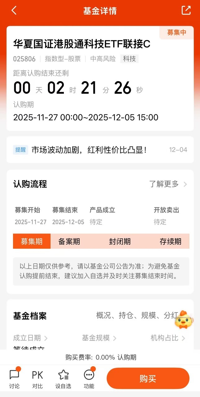 国证港股通科技指数基日(2014.12.31)以来累计涨跌幅超220%,表现显著优于同期恒生指数和沪深300指数,$华夏国证港股通科技ETF联接C$跟踪国证港股通科技指数,布局和估值都不错,今天最后一天结募,可以3点前抢些筹码