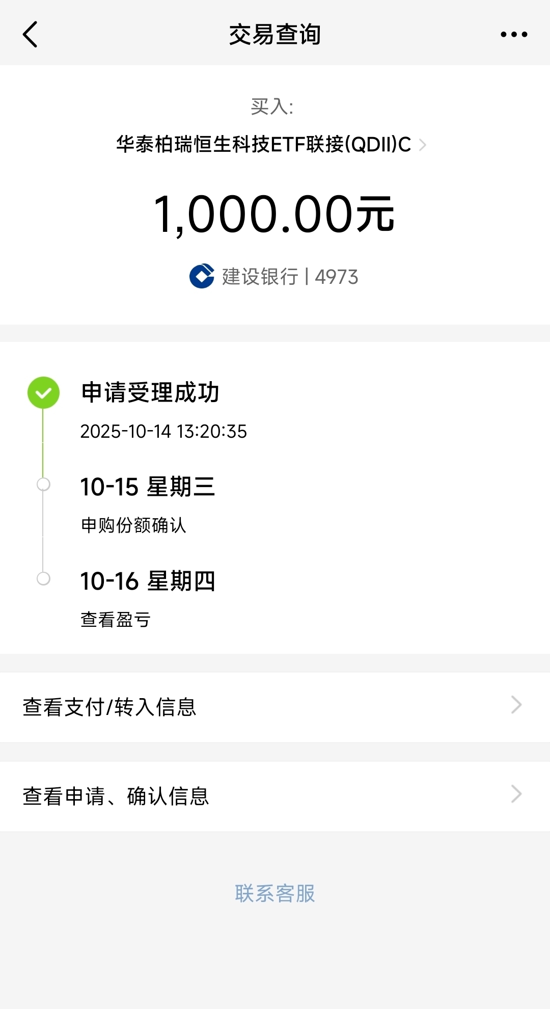 持有恒科这么久,发现它每次震荡得久一点,后续反弹力度就越大,我都巴不得它多调调,好趁机捡点更低价的筹码。阿里、腾讯这些大龙头,长期实力摆在那儿,现在估值又低,入手很划算。我目前在华泰柏瑞南方东英恒生科技上已经拿了不少筹码了,今天再加1000,一点点把仓位补起来,等着后面行情发力。