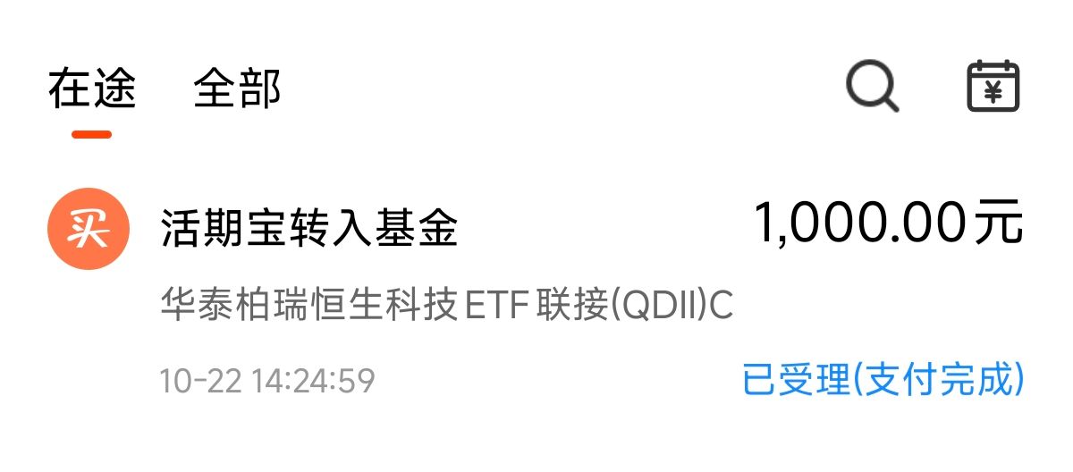 今日加仓$华泰柏瑞恒生科技ETF联接(QDII)C(OTCFUND|015311)$1000元,指数持续拉升不易,今日低开盘中震荡低走进行了调整,不过震荡缩量盘中触底拉升也能稳住支撑,更看正常回踩。再者截止10月21日恒生科技当前估值低于指数发布以来近七成的时间,位置仍不高投资性价比明显所以今日调整南向资金加速入场。