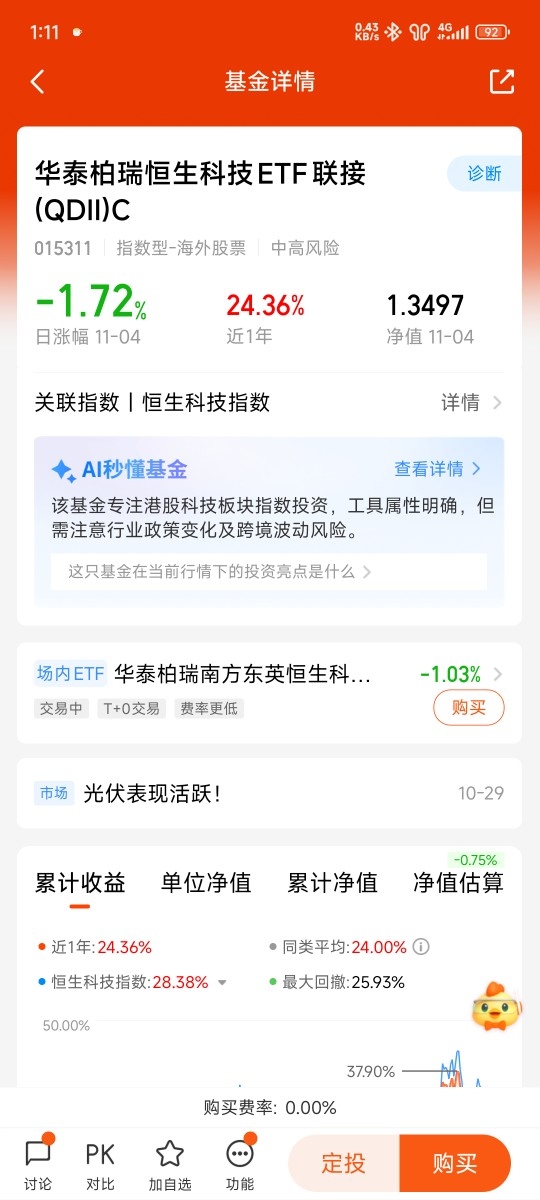 看到恒生科技连续调整,反而想起一句话:"别人恐惧我贪婪"。虽然不建议盲目抄底,但指数跌出空间后,定投价值确实在提升。像华泰柏瑞这类老牌公司的ETF联接,门槛低、费率也友好,特别适合小额分散投资。如果你也看好中国科技股的长期韧性,当前震荡期不妨用定投思路慢慢收集筹码,用时间换空间。