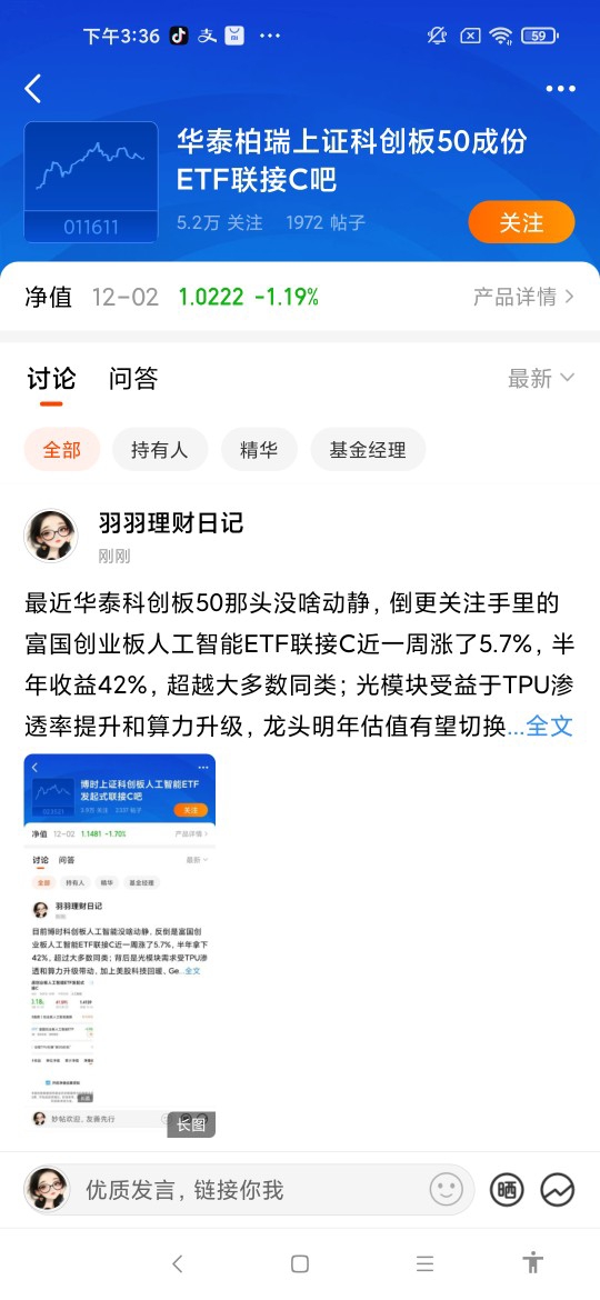 当前华泰恒生科技没啥动静,倒是富国创业板人工智能ETF联接C悄悄发力,近一周涨5.7%、半年42%,跑得稳大多数同类;光模块因TPU渗透和算力升级需求大增,英伟达代际领先,叠加Gemini 3 Pro和阿里千问催化不断。当前指数估值比过去五年36%的时间都便宜,富国创业板人工智能值得考虑配置一点。
