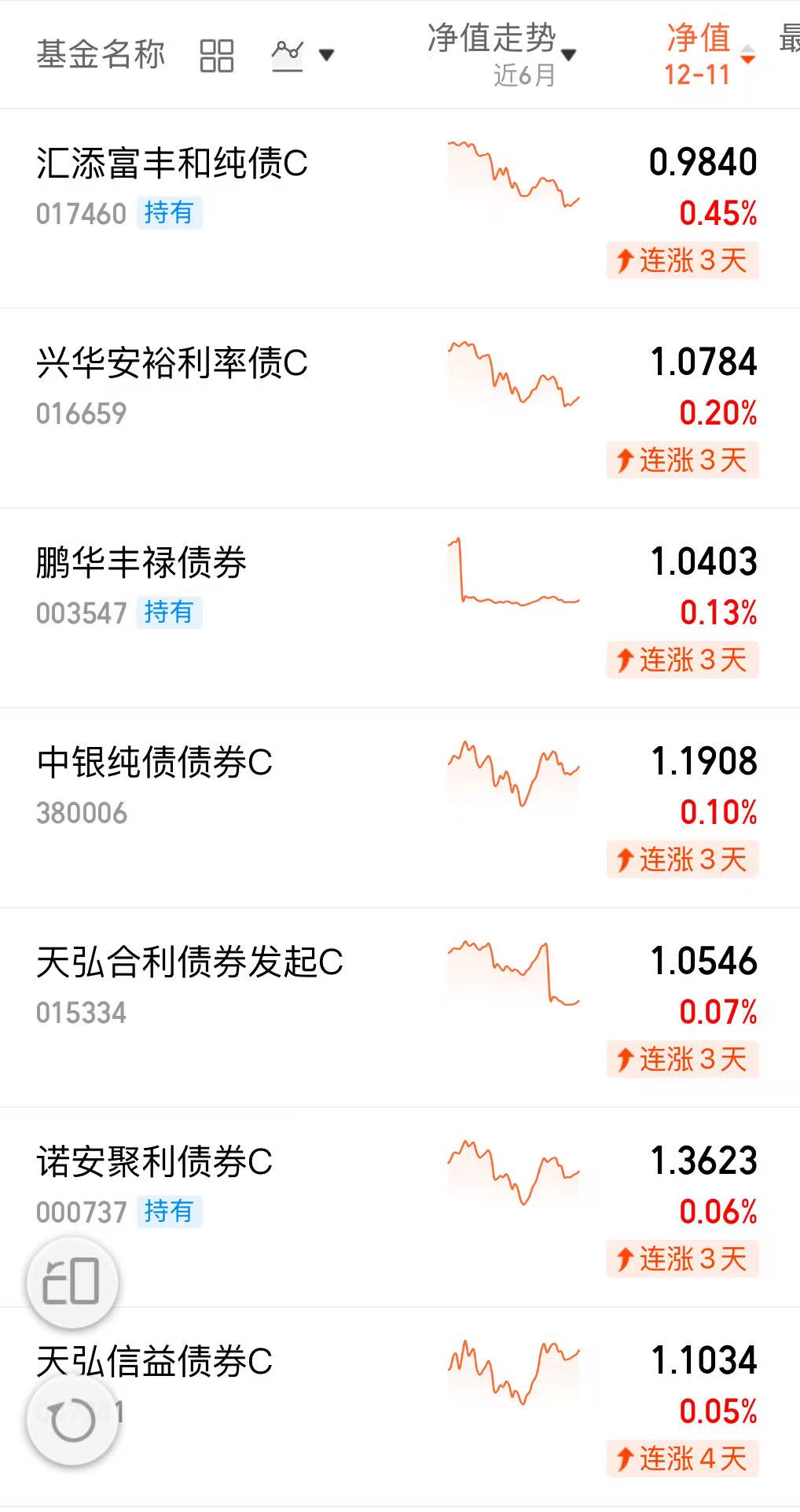 $汇添富丰和纯债C$ 今天又是45个大蛋,拉久期策略,主投超长期利率债,爆发力更强,市场企稳,收蛋当然更多了上涨弹性较普通纯债基更大,连续3天收122个蛋!