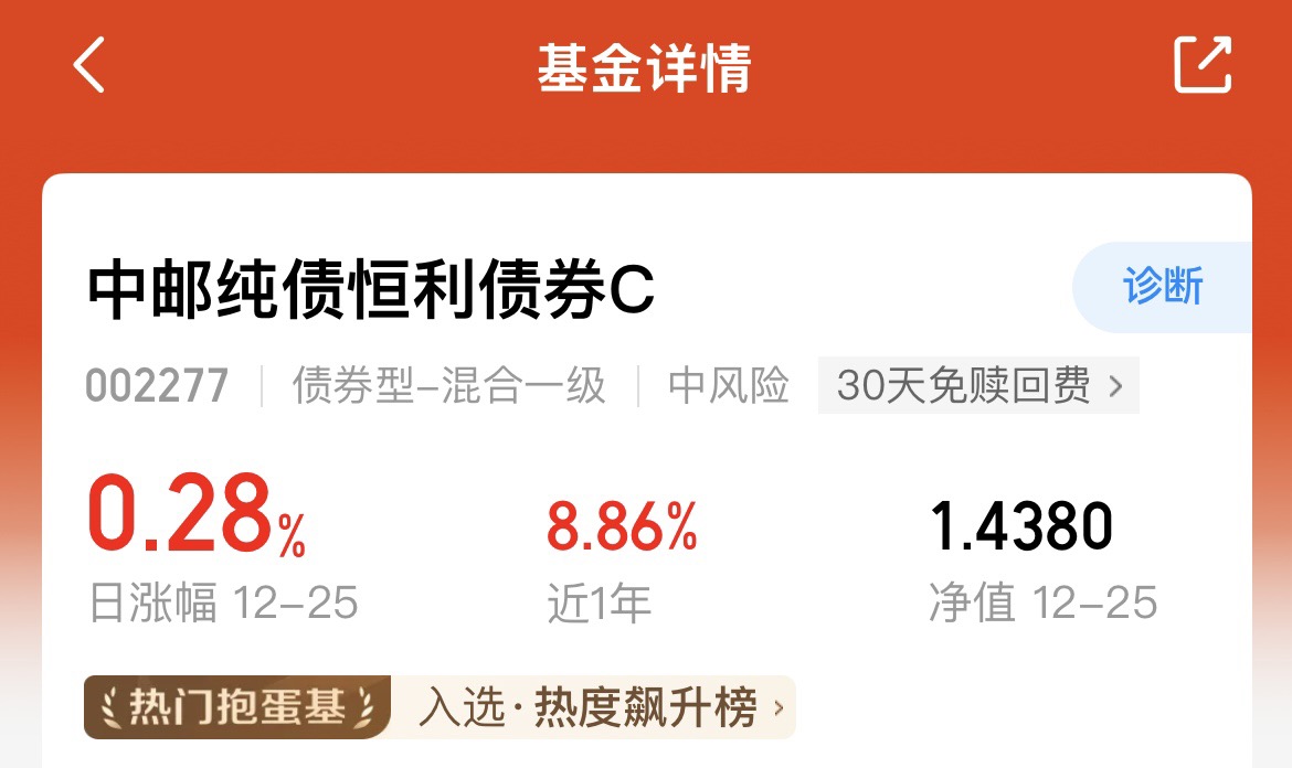 我对这个月的收获非常非常满足,天天恐龙蛋,$中邮纯债恒利债券C$昨天又给了28个