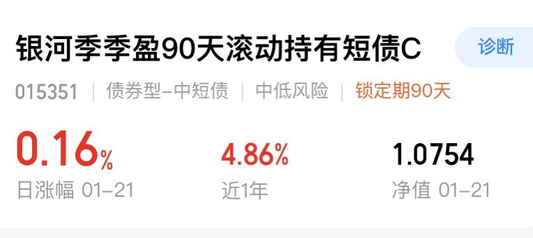 $银河季季盈90天滚动持有短债C$ 今晚收蛋16个,银河季季盈还是一如既往给我惊喜,很棒