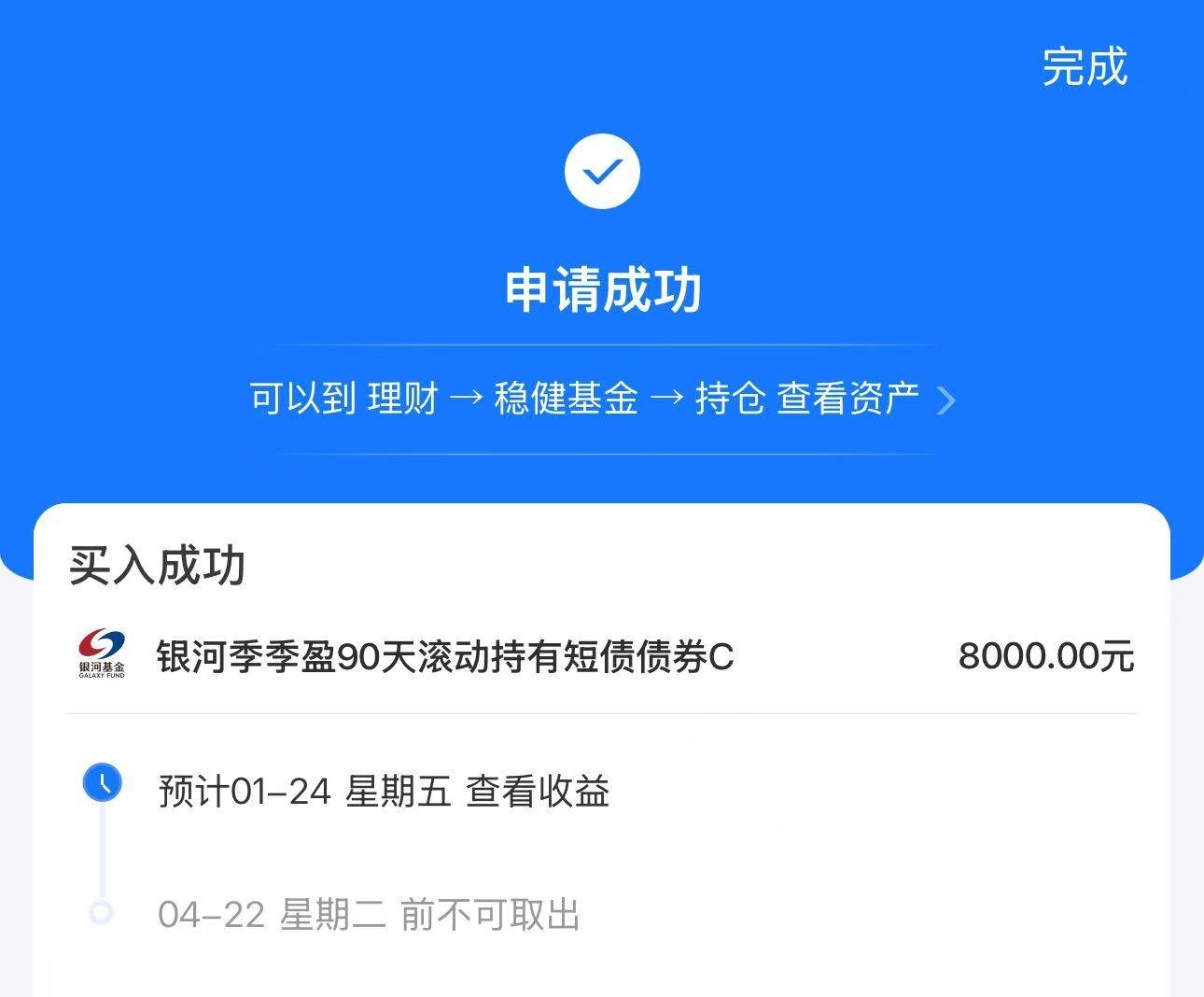 长端利率震荡区间来看,10年国债利率的高点或在1.7%附近,果不其然十年国债没有到1.7%就开始下行,目前1.644%,位置也十分的安全,下周就开启跨年模式了,昨天就说了可以适当开始配置信用债了不要倒在黎明前,今天双债全部开始翻红,又能吃肉了,年前我是不会乱跑了。今天配置一些$银河季季盈90天滚动持有短债C$ ,昨晚收了16个蛋,太香了,近三个月收133个蛋,近一年涨幅4.86%,曲线平稳向上,波动非常小。持仓信用债较多,少部分利率债。90天管住手,就拿这支吃票息啦!今天+1000元。
