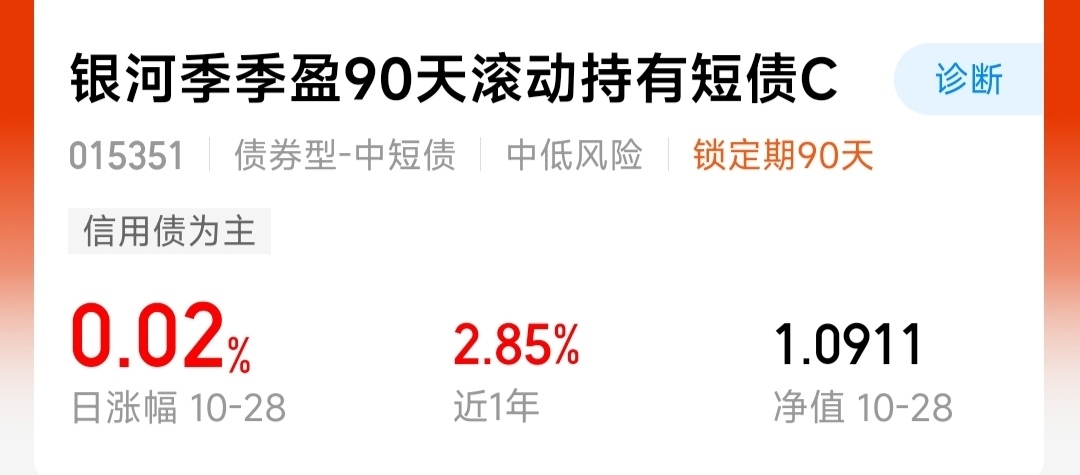 $银河季季盈90天滚动持有短债C$ 收了2个蛋