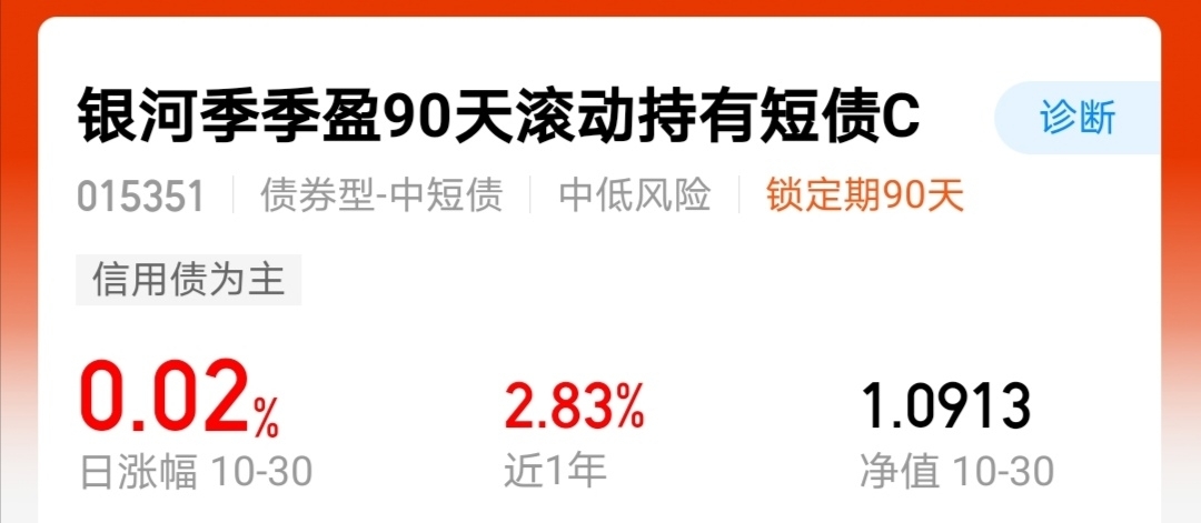 今天债市行情还不错,有望继续收蛋了。$银河季季盈90天滚动持有短债C$最新收蛋+