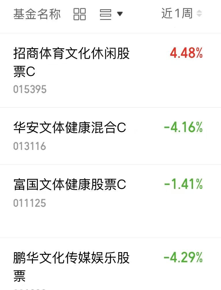 近期大A行情震荡幅度比较大,连续回调多日,整体都是吃大面为主,而且板块分化比较明显,文体娱乐方向还是相对稳健的,来看看近一周净值情况