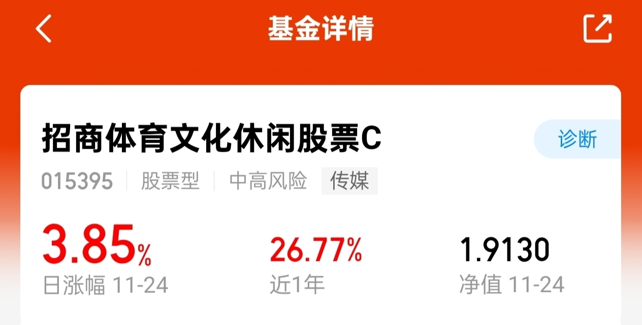 这两天A股市场波动挺大的,不过总算看到点企稳的迹象了。我持有的招商体育文化休闲股票C(015395)昨天涨了3.85%,这个表现让我挺欣慰的。最近行情就是板块轮着涨,今天这个涨明天那个涨的,所以我都是分散着买点不同板块的基金。虽然市场还在震荡,但感觉慢慢在好转,我打算继续拿着观察看看。
