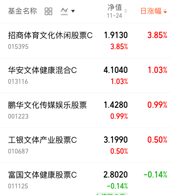 $招商体育文化休闲股票C(OTCFUND|015395)$昨天+3.85%