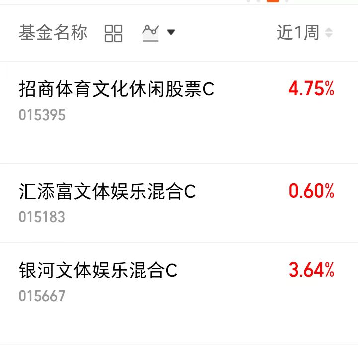 友友们,这周股市行情反弹,上涨给了,涨幅拉升,估值修复啦。$招商体育文化休闲股票C(OTCFUND|015395)$连续上涨几天了,近一周上涨4.75%,业绩突出。