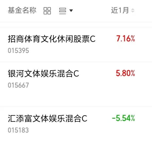 $招商体育文化休闲股票C(OTCFUND|015395)$近一个月上涨7.16%;