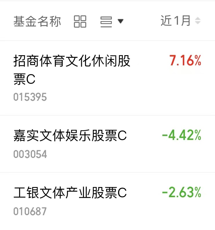 $招商体育文化休闲股票C(OTCFUND|015395)$近一个月上涨7.16%