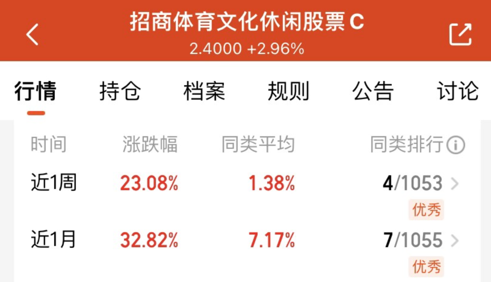 $招商体育文化休闲股票C(OTCFUND|015395)$这只基金就很亮眼,近一个月涨幅达到 32.82%,比其他传媒主题基金的弹性更强。当下拿着这只基金特别踏实,我打算买点布局,科技成长和传媒的机会都不想错过。