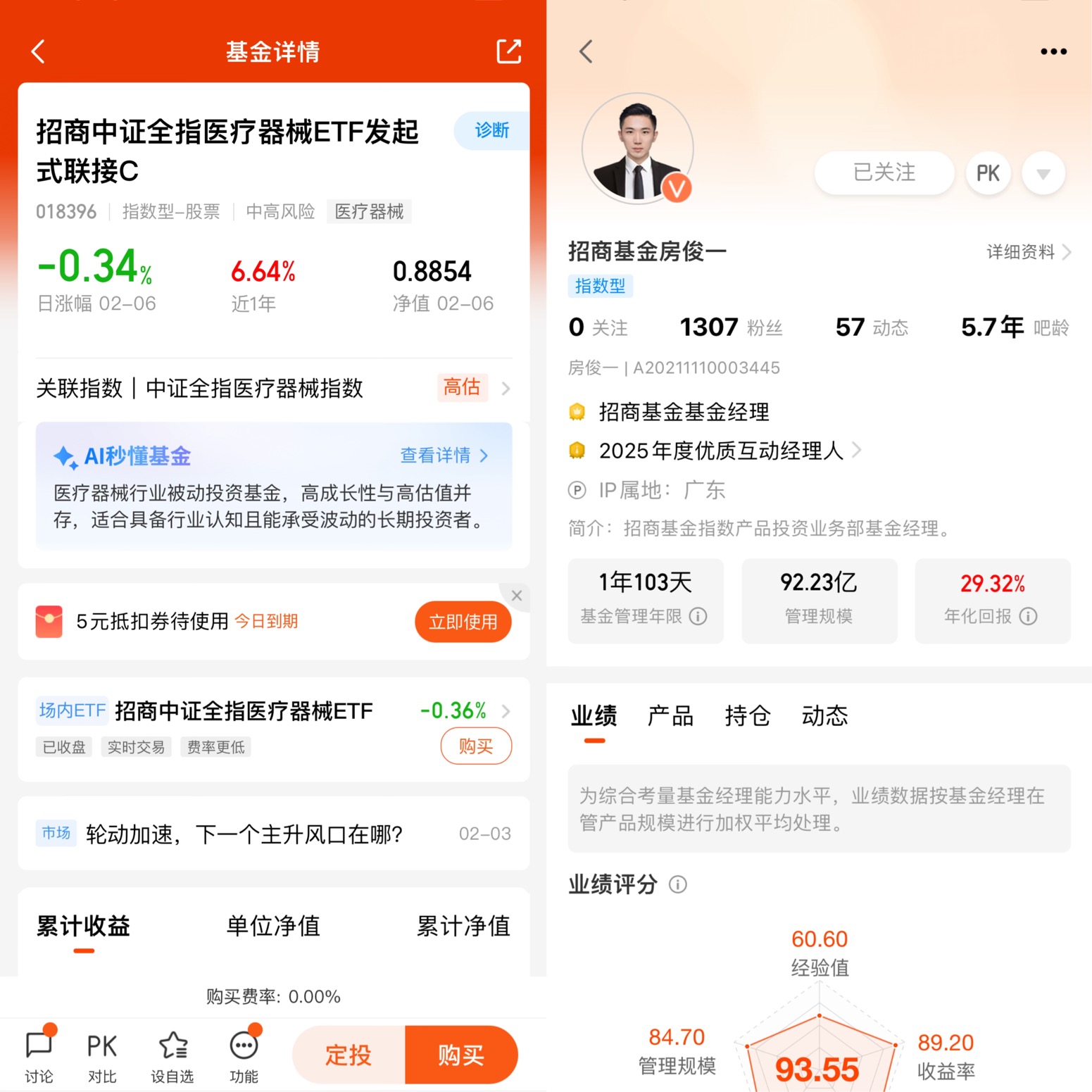 这只基金是跟踪中证全指医疗器械指数的被动型产品,基金经理房俊一在指数基金管理上经验丰富,管理规模超过90亿,跟踪误差控制得非常好。