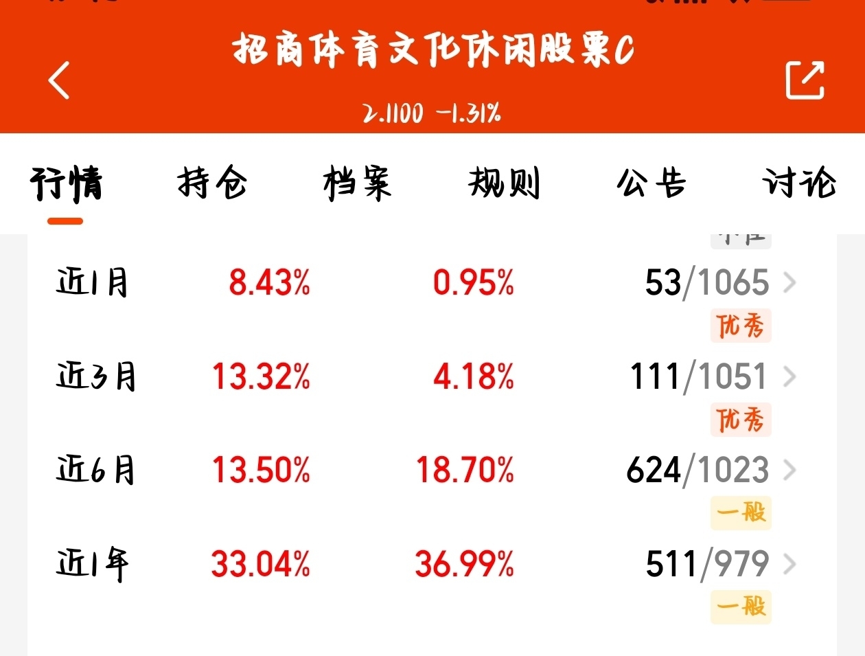 春节消费升温,体育文化板块迎来行情爆发!$招商体育文化休闲股票C$ 精准布局体育、传媒、文旅赛道,完美契合春节消费热潮。近期板块持续走强,产品弹性十足,今年以来表现亮眼,是把握文体消费复苏行情的优质选择。