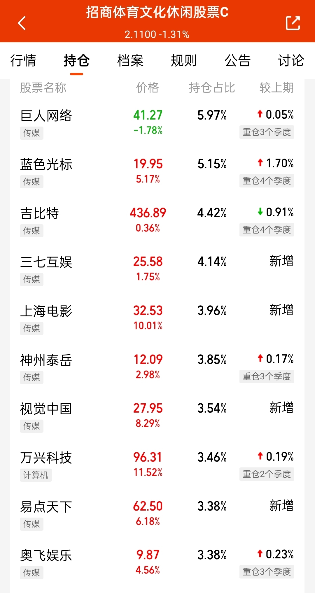 招商体育文化休闲股票C,要走强了!今日持仓个股涨幅颇为亮眼,为投资者带来不少惊喜