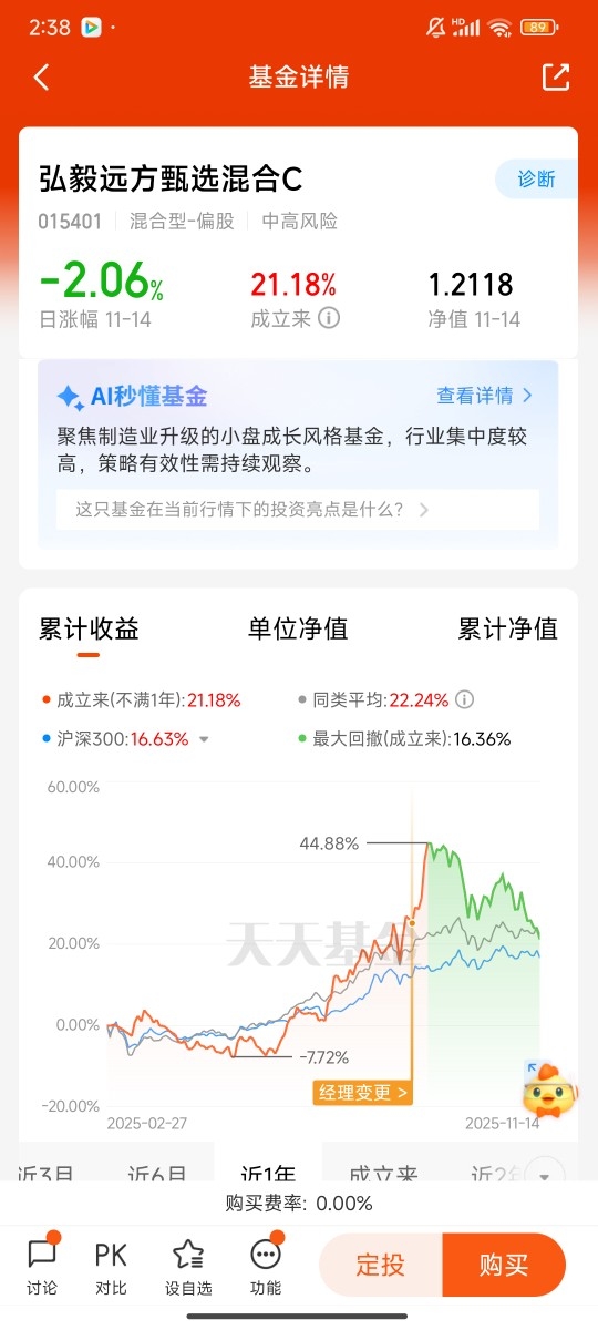 再者,从基金的历史业绩表现来看,弘毅远方甄选混合在市场波动中展现出了较强的韧性和盈利能力。尽管今年以来机器人板块整体震荡调整,但该基金凭借着精准的持仓和灵活的操作,在同类基金中表现突出。拉长时间维度来看,自基金成立以来,在市场不同的牛熊周期中,均取得了超越同类平均水平的收益率,为投资者创造了可观的投资回报。同时,基金的风险控制能力也值得肯定,通过合理的仓位管理和行业配置,有效降低了基金的回撤幅度,让投资者在享受成长收益的同时,也感受到了相对稳定的投资体验。