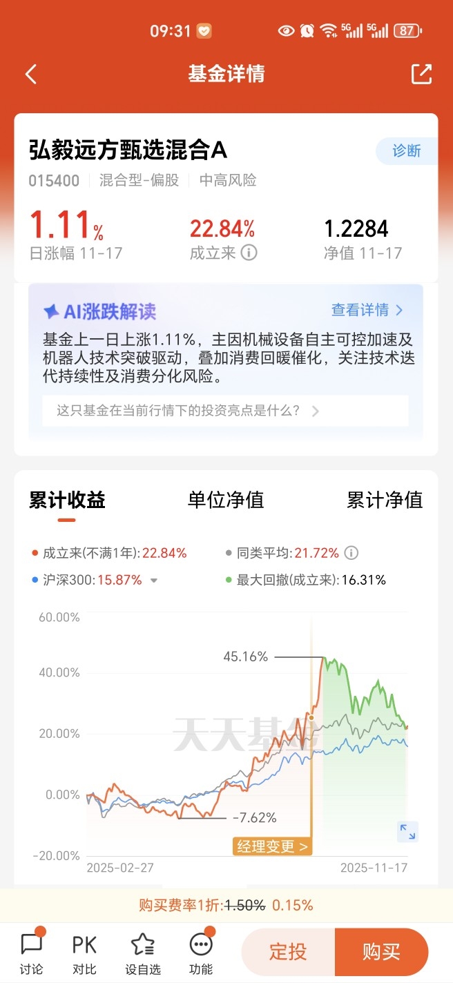 #机器人板块狂飙!下一个风口?#选择投资弘毅远方甄选混合A(015400),核心在于其精准卡位人形机器人高景气赛道,叠加基金经理专业把控、稳健持仓策略及管理层背书等优势,能让投资者便捷分享产业成长红利。