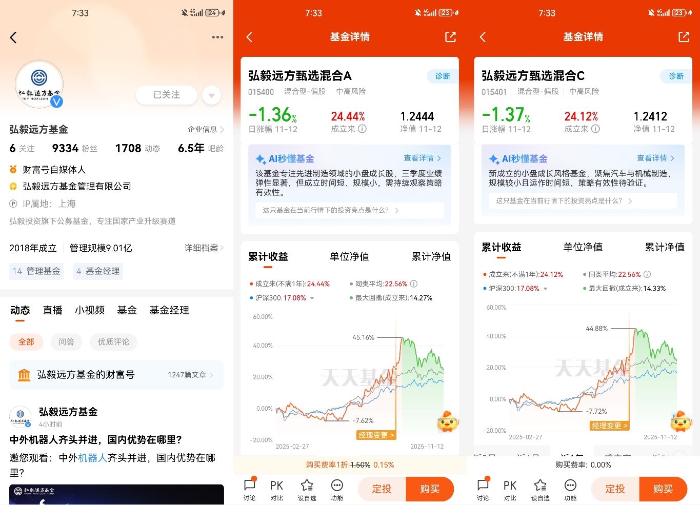 现在板块的回调,反而给了布局的“窗口期”。只要相信中国高端制造的竞争力、看好机器人的长期趋势,当下的调整就是给长期持仓“捡筹码”的机会,而弘毅远方甄选混合,正是能接住这个赛道红利的工具之一。@弘毅远方基金