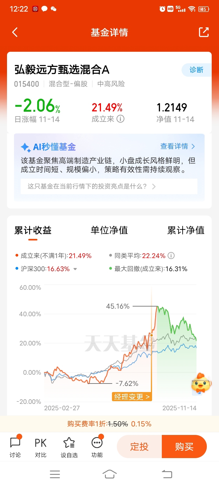 当然最近机器人板块在回调,但这反而给了布局机会——技术迭代的逻辑没断,行业从实验室往商业化走的趋势没改,短期回调只是情绪性的。弘毅远方甄选混合C聚焦汽车和机械设备行业,刚好能覆盖机器人产业链里的核心标的,不管是零部件还是本体制造,都能蹭到赛道的成长红利。