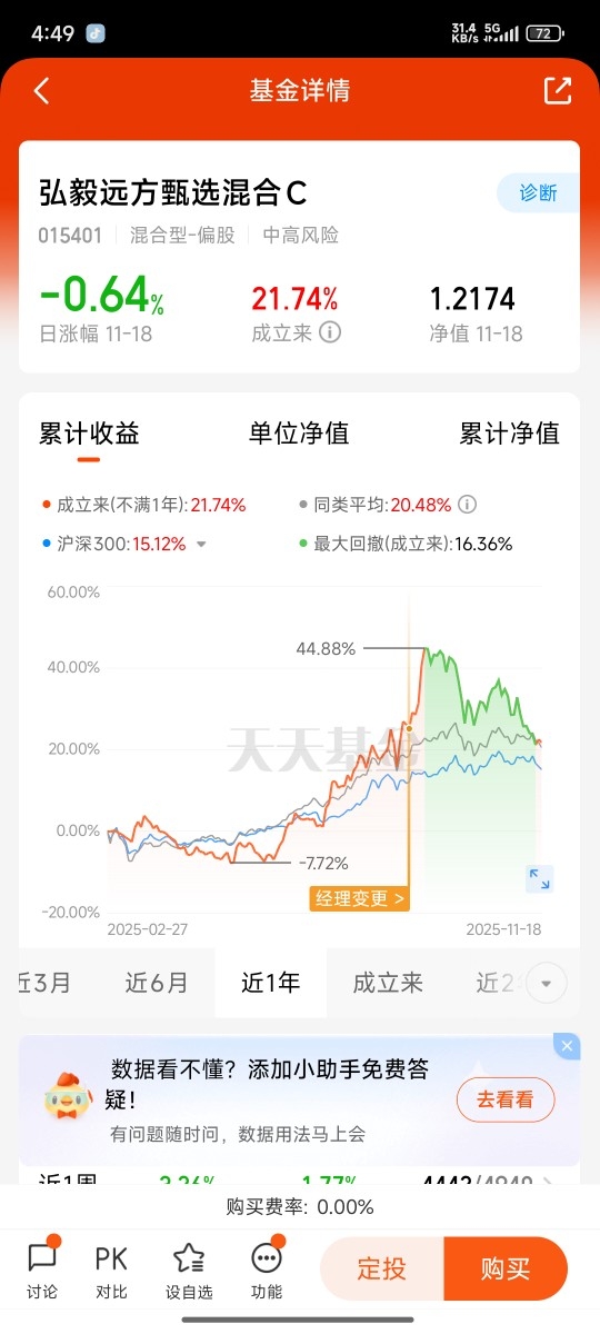 在众多布局机器人赛道的基金产品中,弘毅远方甄选混合C(代码:015401)宛如一颗冉冉升起的新星。成立于2025年2月27日的它,虽不足一年,却已交出成立以来年化收益率31.12% 的优异成绩单,超越93%的同类产品,展现出惊人的成长性。