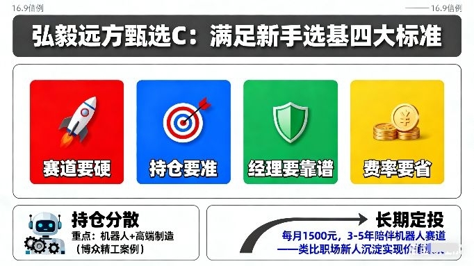作为理财新手,我选基金的标准很简单:赛道要硬、持仓要准、经理要靠谱、费率要省。弘毅远方甄选C刚好全部满足,还有两个加分项让我彻底下定决心: