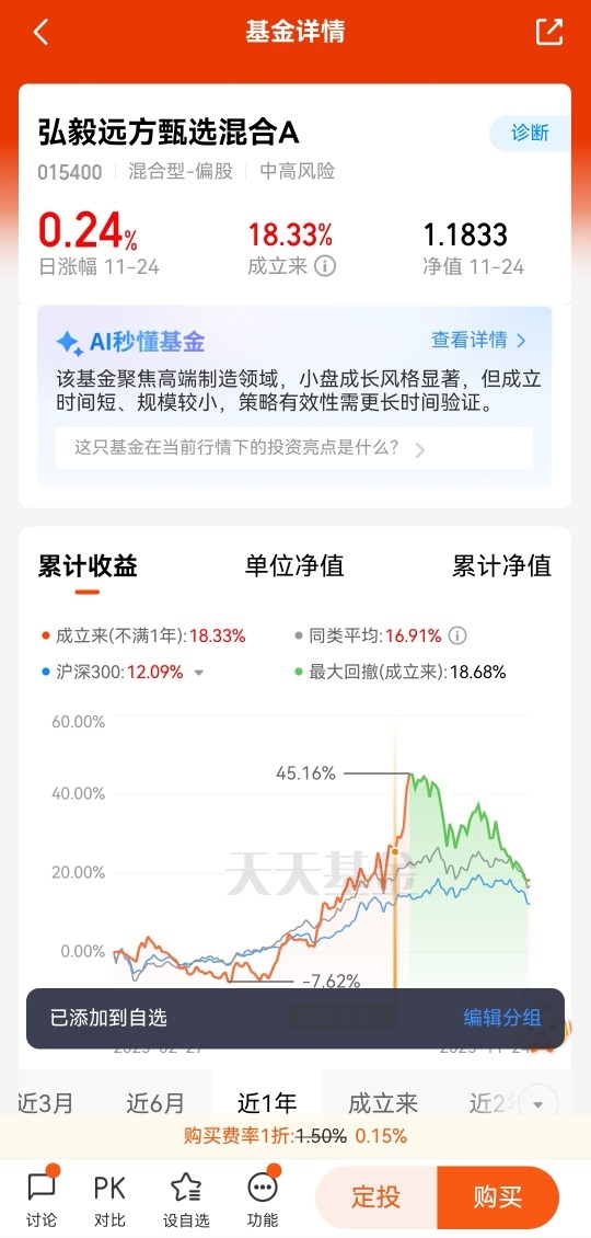 $弘毅远方甄选混合C$ $弘毅远方甄选混合A$ 聚焦机器人赛道的混合股票型基金,最新持仓重仓汇川技术、爱科迪、隆盛科技、汉威科技等聚焦工业机器人、核心零部件环节,着重机器人产业链中上游环节的深度布局。凭借鲜明的主题投资,精准地捕捉到了前期机器人上升行情,同时在下行期间的回撤也较机器人指数小,整体表现优于同类平均水平。
